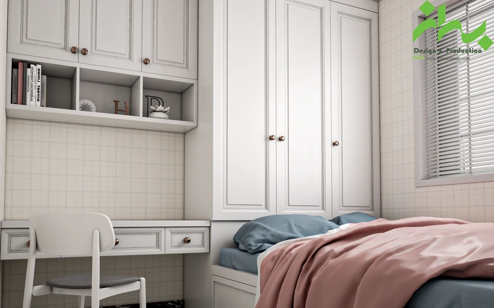 این مدل با طراحی منسجم و مدرن، مجموعهای از تخت، کمد و میز تحریر را در قالبی یکپارچه و چشمنواز در کنار هم قرار داده است.