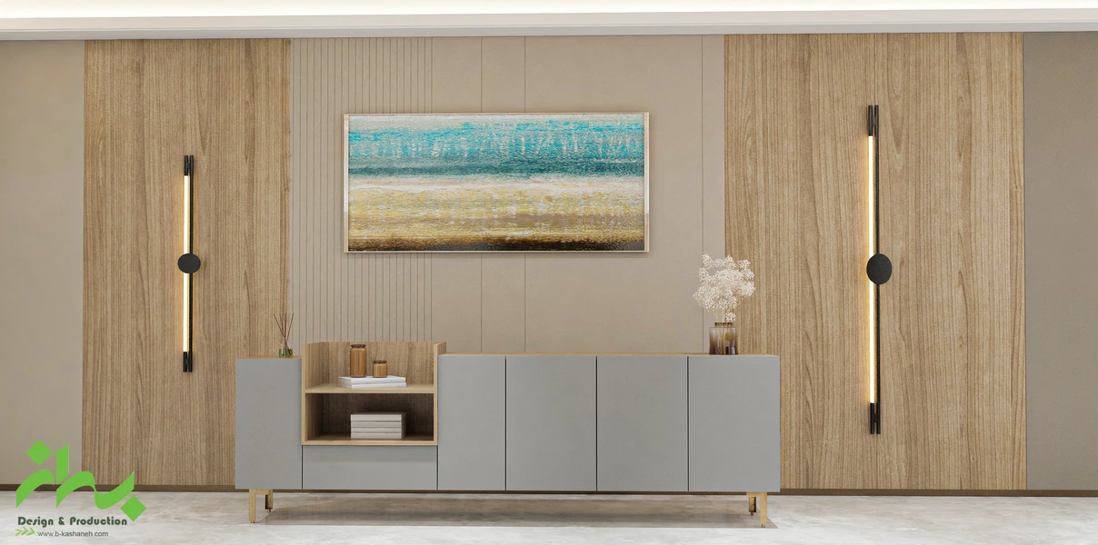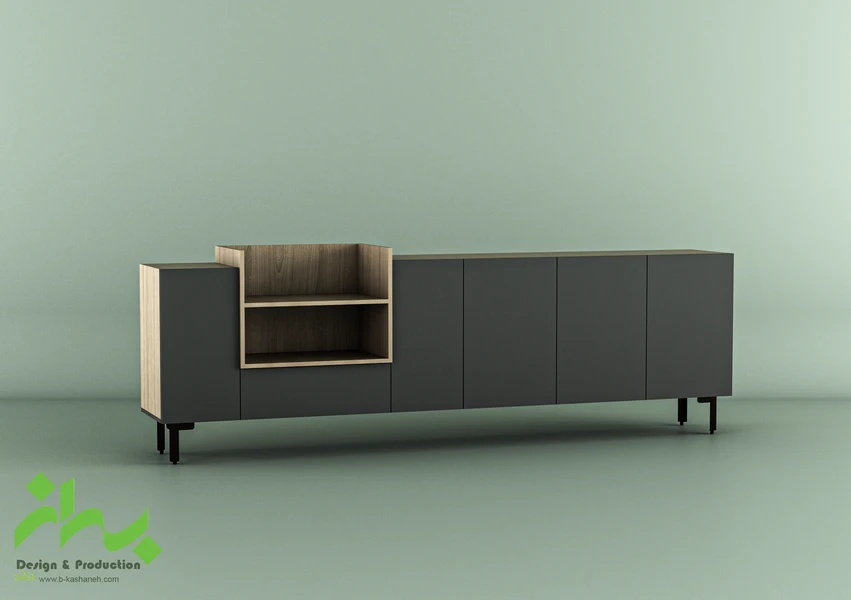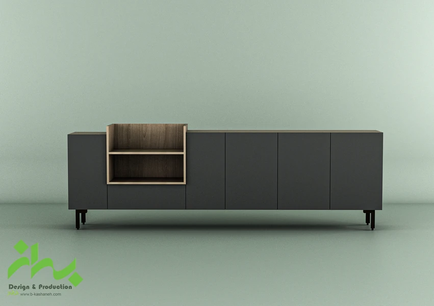 فضای ذخیرهسازی این کنسول بهطور چشمگیری گسترده است؛ شامل ۵ کمد جادار، یک کشوی کاربردی و دو طبقه باز برای قرار دادن وسایل دکوری، کتاب یا گلدان. این طراحی هوشمندانه، هم امکان نظمدهی وسایل را فراهم میکند و هم فرصتی برای نمایش لوازم تزئینی در اختیار شما میگذارد.