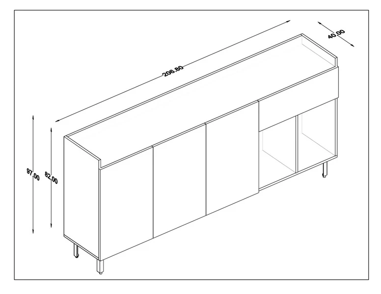 این کنسول ترکیبی از کارایی و زیبایی است که برای خانههای مدرن طراحی شده است. بدنه اصلی از امدیاف مرغوب ساخته شده و دوام و کیفیت بالایی دارد. طراحی هوشمندانه آن شامل سه کمد جادار در بخش پایینی برای وسایل بزرگتر، به همراه یک کشو برای لوازم کوچکتر مانند کلید، اسناد یا وسایل روزمره است.
